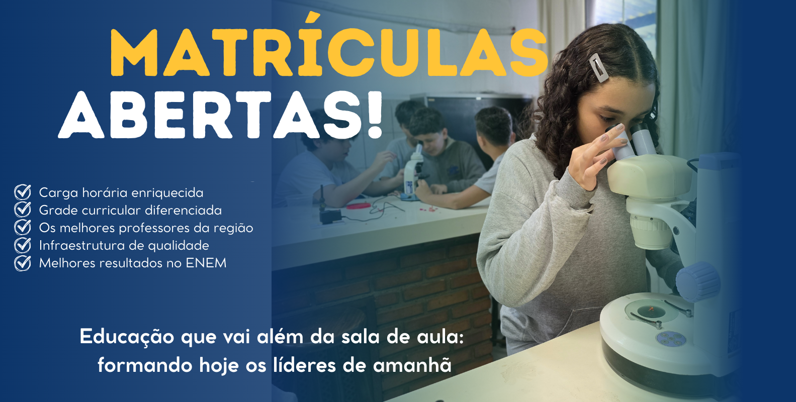 Nossa paixão é oferecer o que há de melhor em inovação pedagógica. Acreditamos em metodologias ativas e na personalização do aprendizado, tudo dentro de um currículo amplo e completo, pensado para o mundo de hoje.